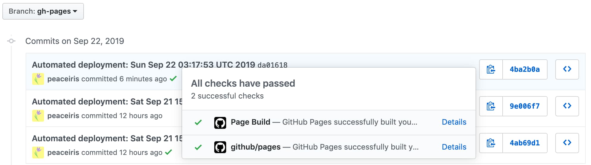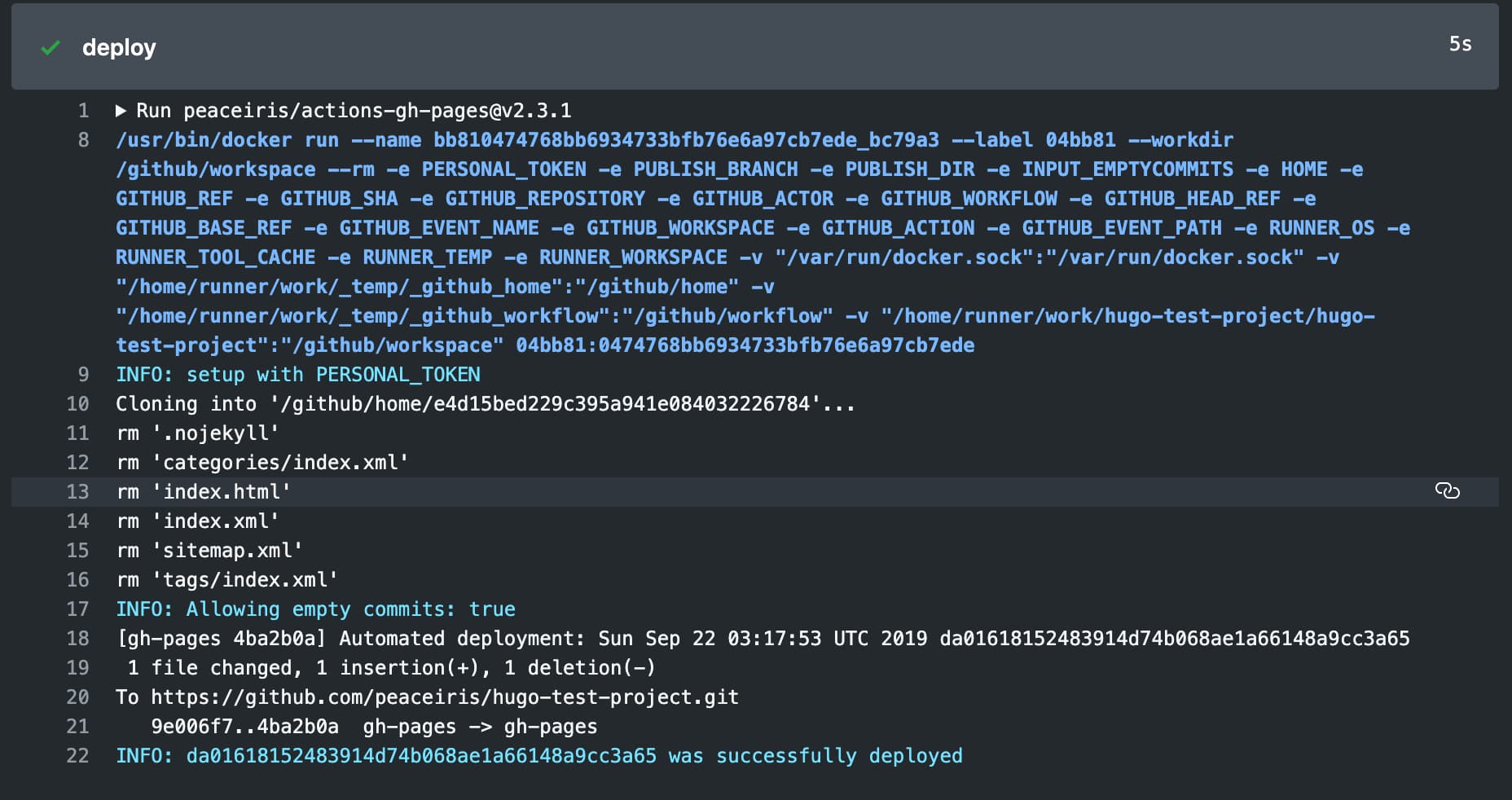 The next example step will deploy ./public directory to the remote gh-pages branch.