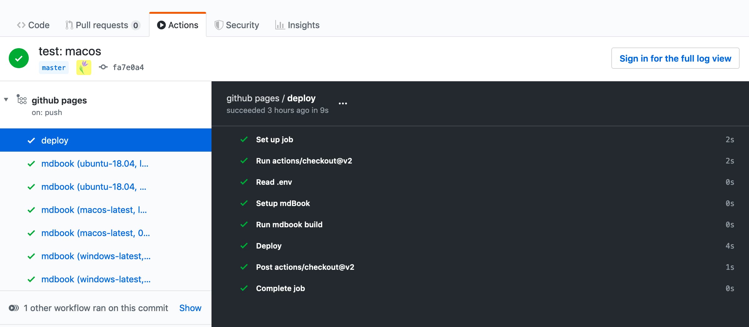 An example GitHub Actions workflow to deploy rust-lang/mdBook site to GitHub Pages.