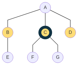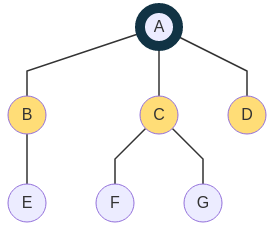The node with the large border is the reference node (the node from which the navigation method is invoked.) The yellow nodes are those returned by the method.