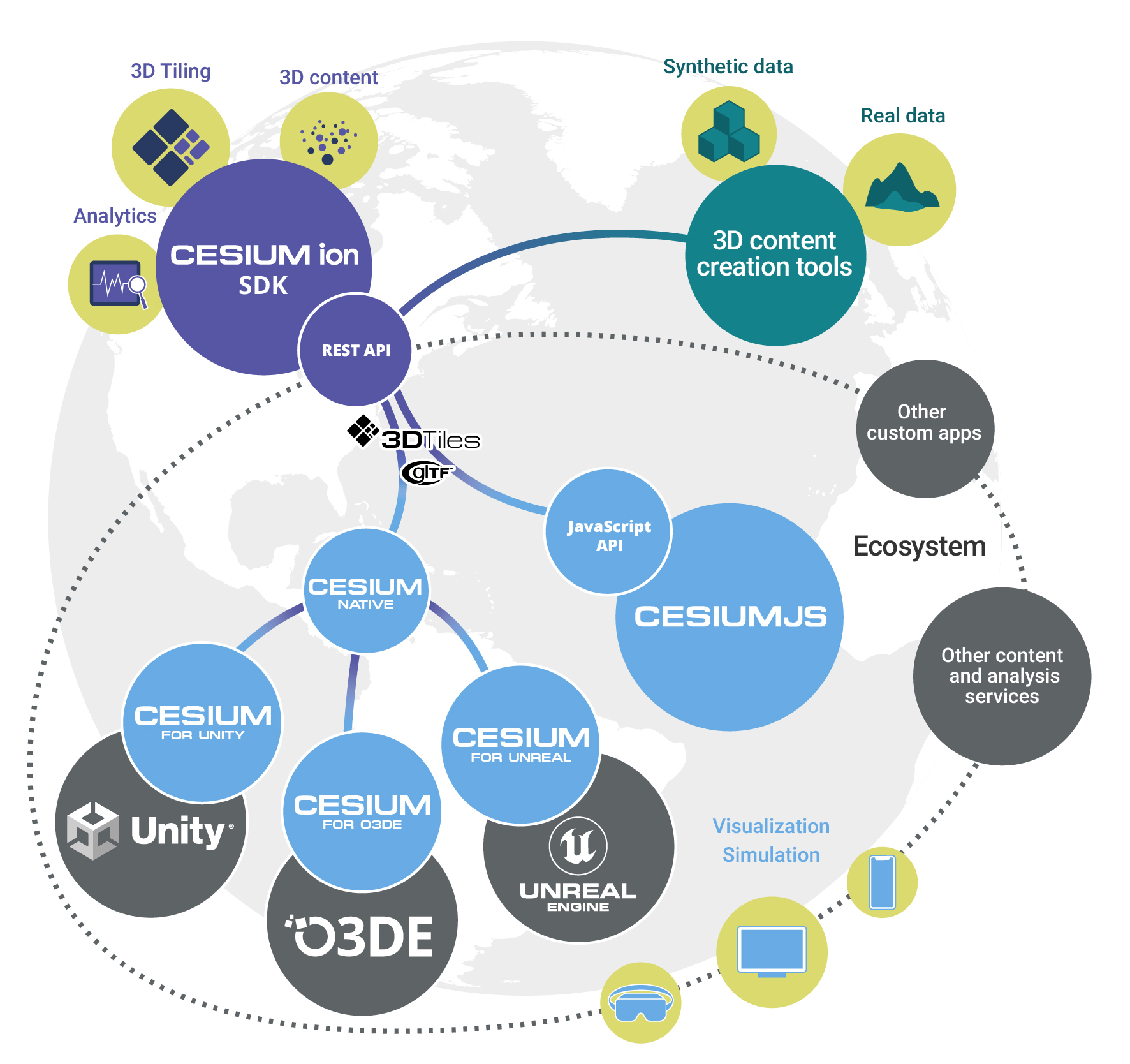 Cesium Native powers Cesium's runtime integrations for Cesium for Unreal, Cesium for Unity, and Cesium for O3DE. Cesium Native is the foundational layer for any 3D geospatial software, especially those that want to stream 3D Tiles.