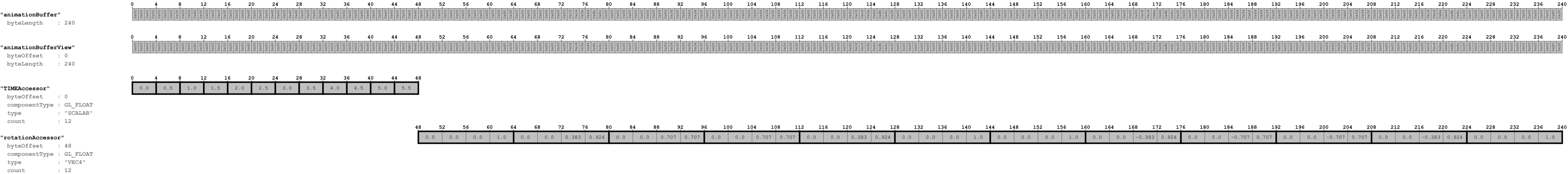The following images show the data layout of this sample: