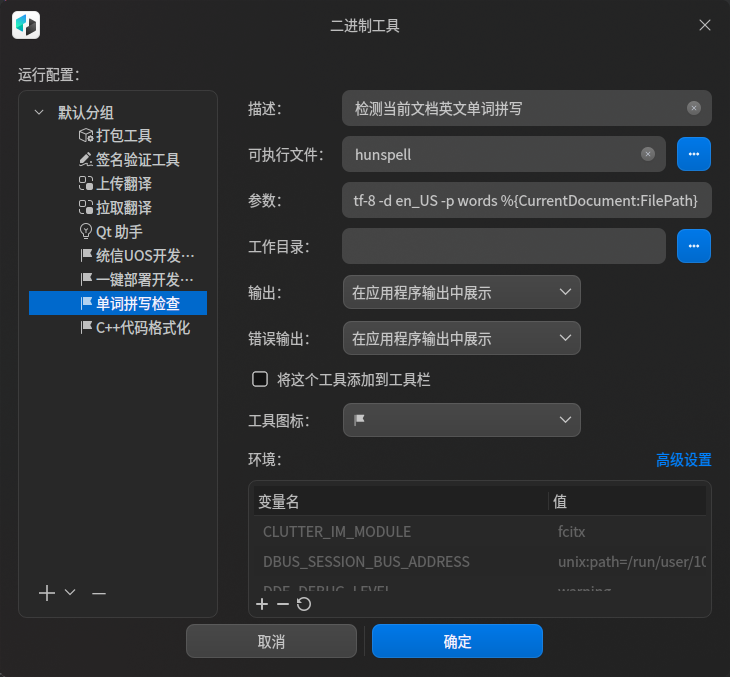 编辑工具:对工具的描述、可执行文件、参数、工作目录等参数进行配置;