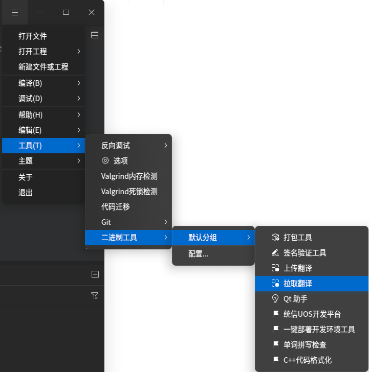 deepin-unioncode源码,假设源码存储的路径为project-path,在该源码可以编译运行的基础上,创建插件模板,将插件模板的源码整个放入project-path/src/plugins目录下,修改project-path/src/plugins/CMakelists.txt,在中加入add_subdirectory(xx)其中xx为插件工程目录名,直接使用deepin-unioncode工程。