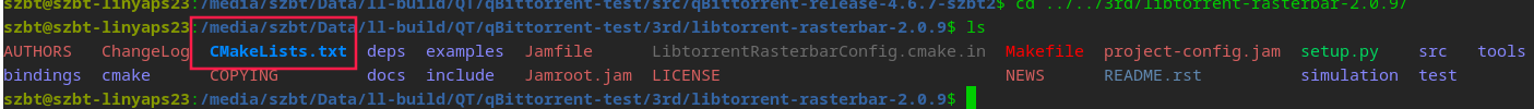 libtorrent-rasterbar-2.0.9source code directory and can see that it has aCMakeLists.txtfile, which is aCMakebuild project.